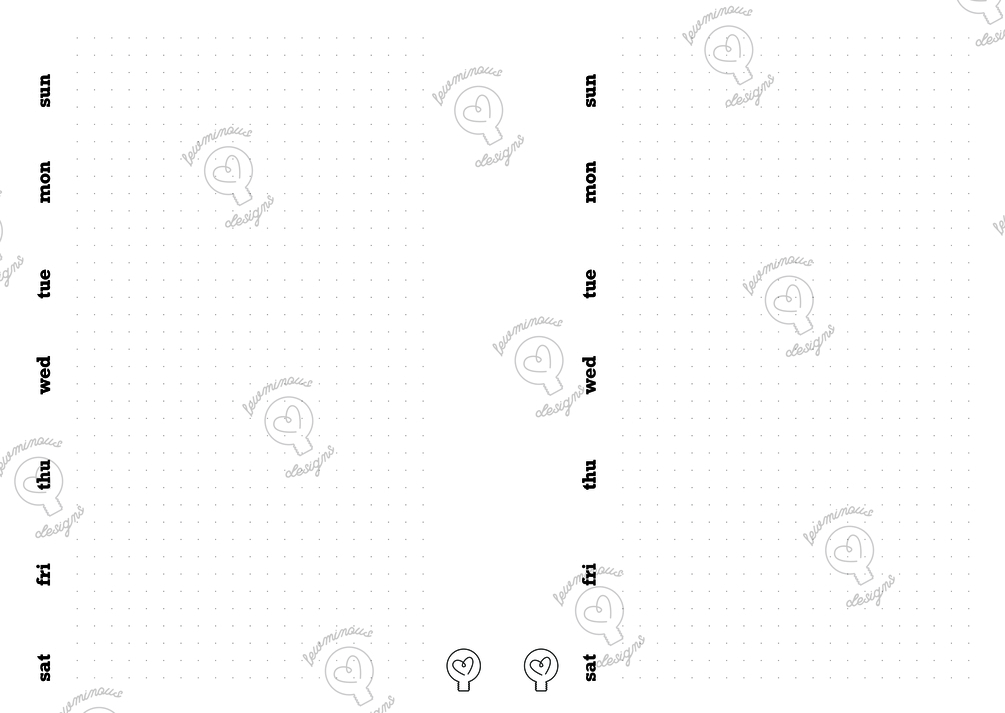 - One PDF has an explanation on how to print on your A5 page; the second PDF contains the Weekly Single-Page Horizontal Spread, Dot Grid Layout